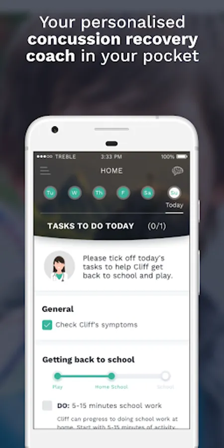 • Parents are provided with tasks and concussion education based on their child’s symptoms and progress
