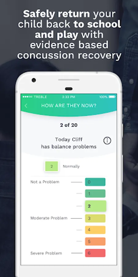 • Asks parents to rate the severity of the child’s symptoms pre-injury and how they are now