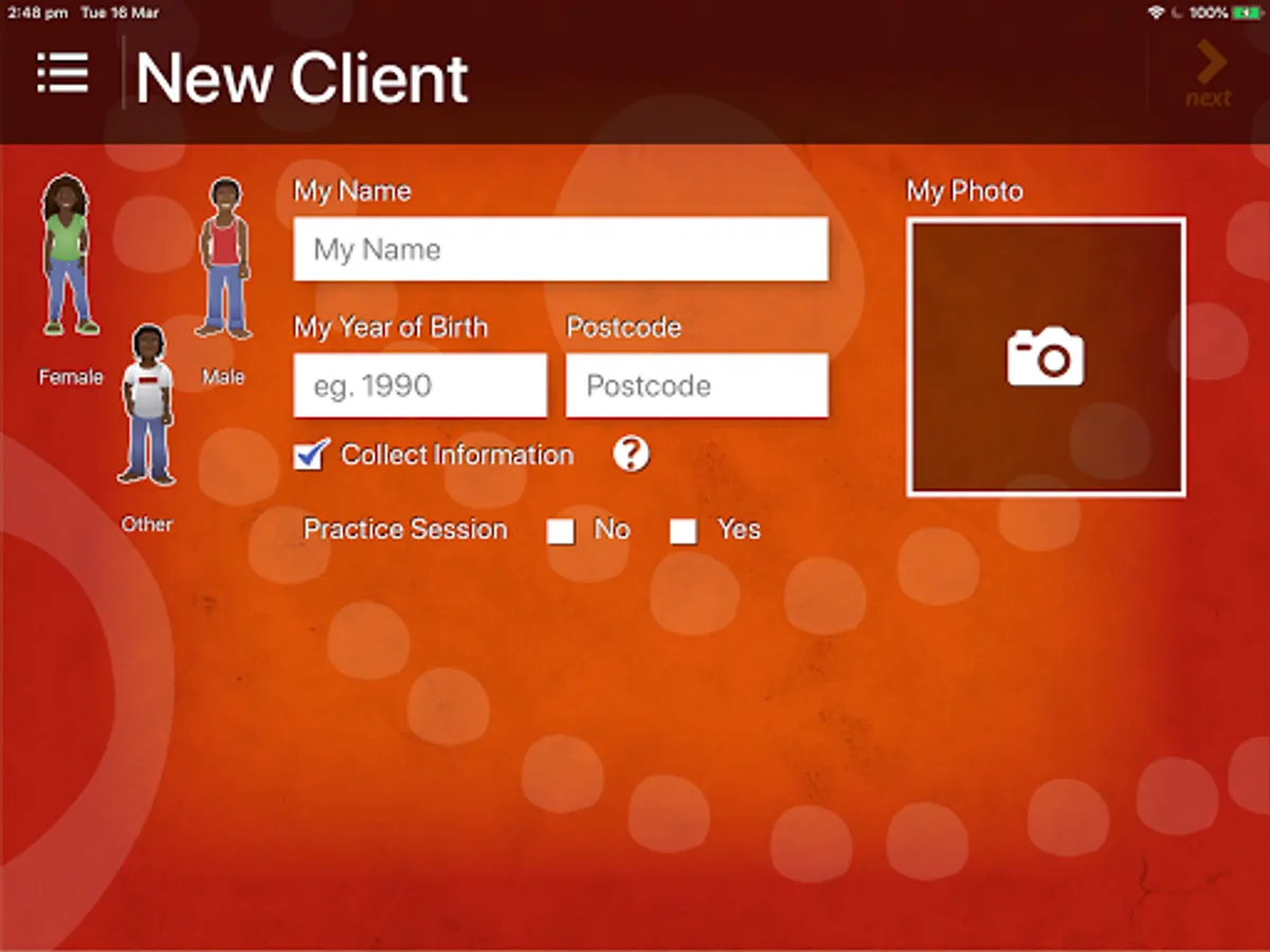 The App is password protected to ensure client confidentiality. Users will always be asked to re-enter their password upon opening the App and again when accessing existing client data.