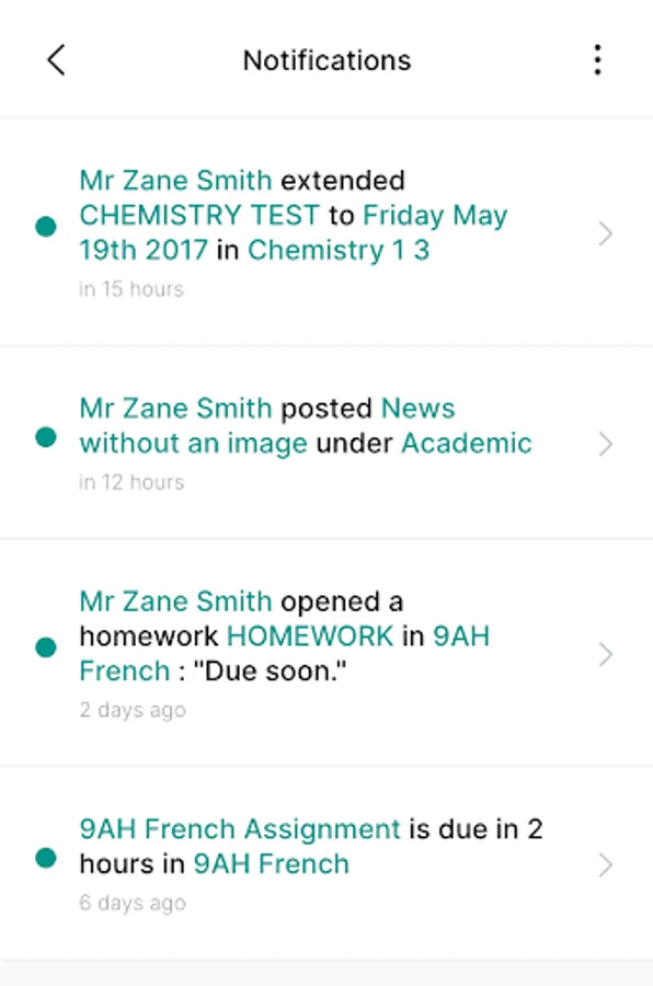Calendar: the Calendar provides parents, teachers and students a personalised view of what's coming up for the day or in the future. Students can also receive reminders when the due date for their work is approaching
