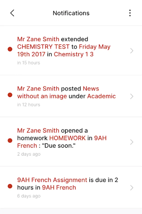 Calendar: the Calendar provides parents, teachers and students a personalised view of what's coming up for the day or in the future. Students can also receive reminders when the due date for their work is approaching