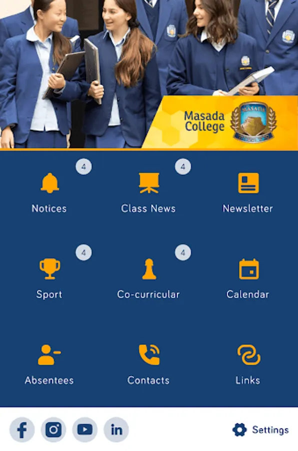 Key features of the Masada College app: