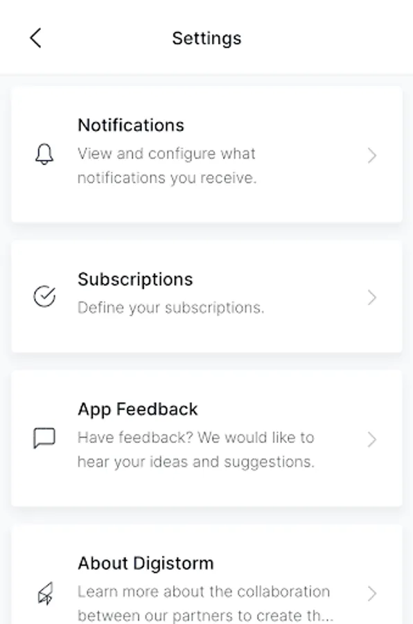 Settings allows you to manage the frequency and type of notifications that you receive from Masada.