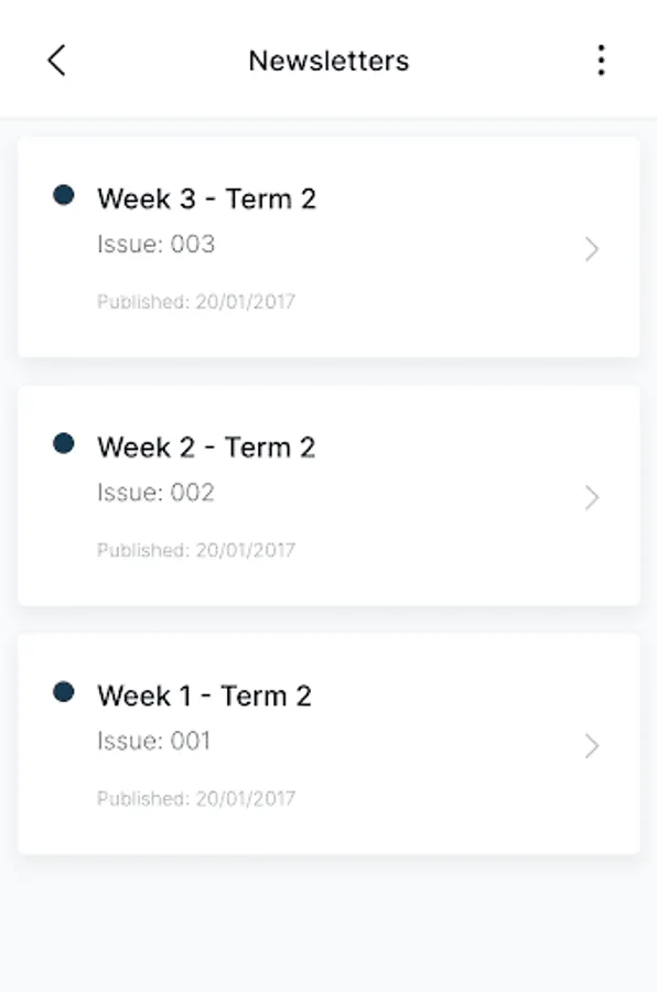 Newsletter: the Newsletter module allows Calvary Christian College, Townsville to share electronic newsletters, directly to the app