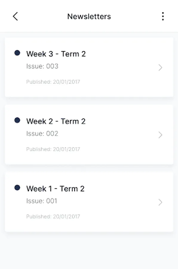 Newsletter: the Newsletter module allows Dalby Christian College to share electronic newsletters, directly to the app