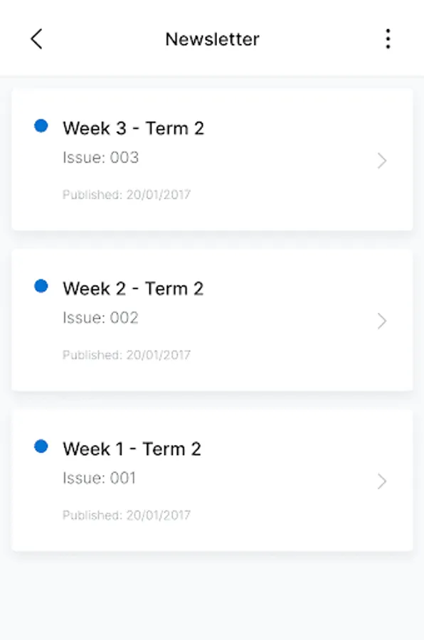 Newsletter: the Newsletter module allows Whitsunday Christian College to share electronic newsletters, directly to the app