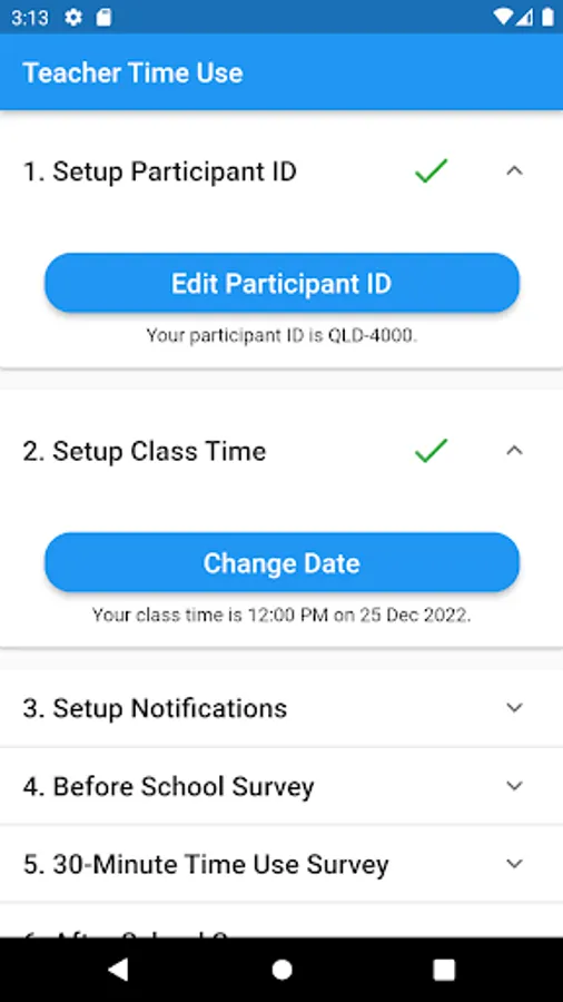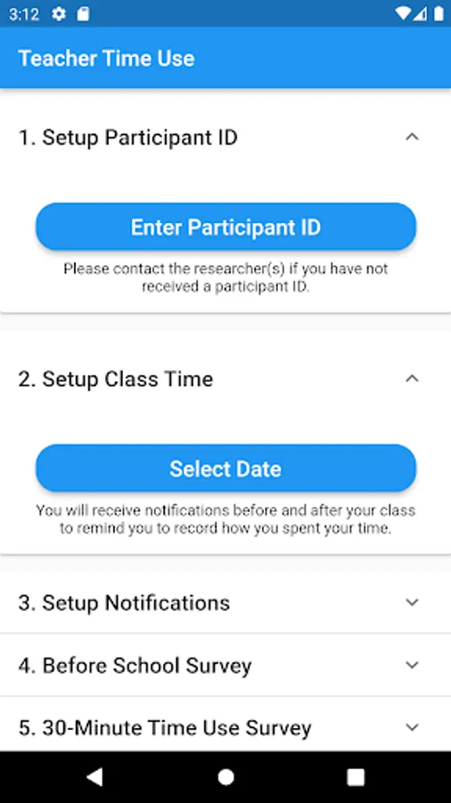 Teacher Time Use app acts as a digital diary of time-use. The app will be designed to collect data on both contact time, non-contact time and time spent on tasks outside of school hours. To capture information on intensification, the app will also collect data on how time is experienced, such as whether or not there is “enough” time within the day. During this stage of the research the app will be piloted with a small group of participants to ensure it is fit for purpose.