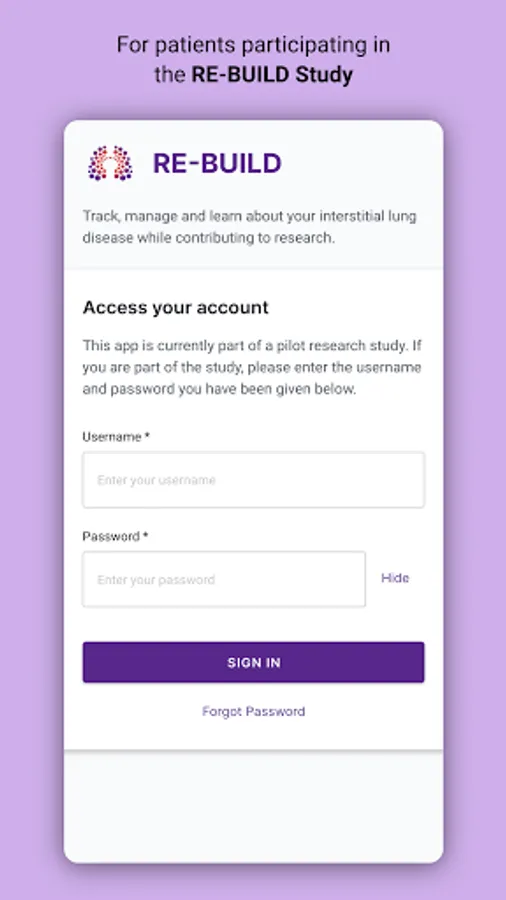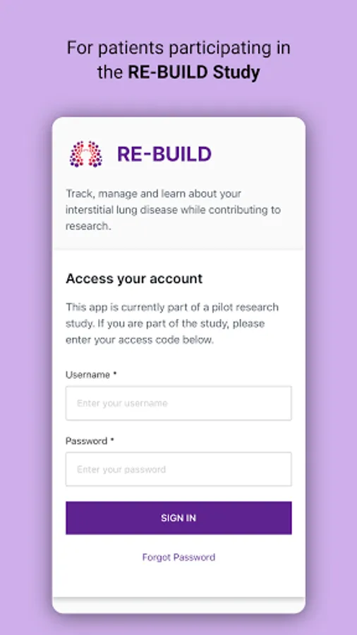 The RE-BUILD (REgistry for Better Understanding of ILD) App is part of a research study being conducted in Australia at The University of Sydney in collaboration with Royal Prince Alfred Hospital, The Alfred Hospital, and Austin Health.
