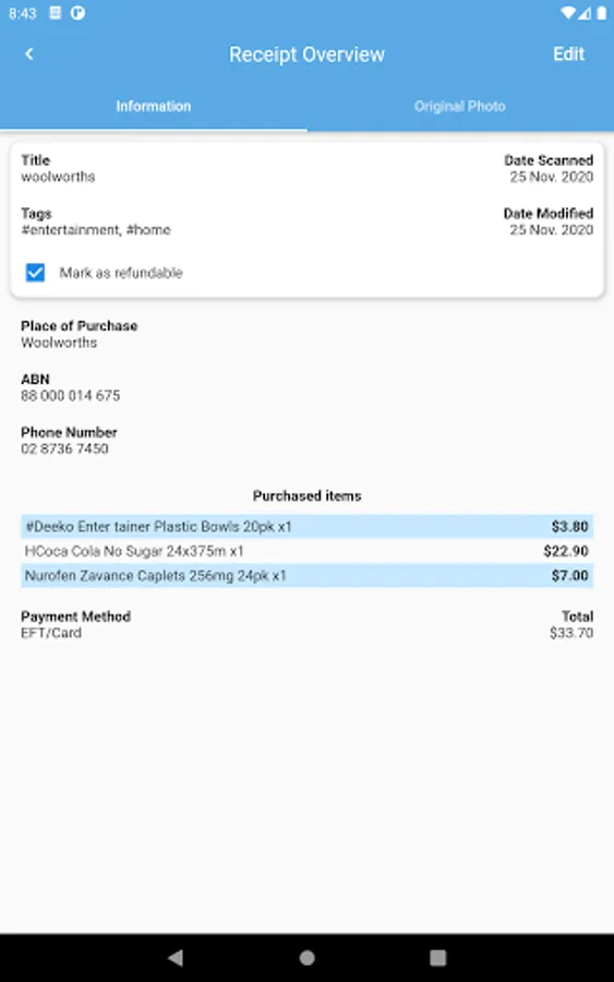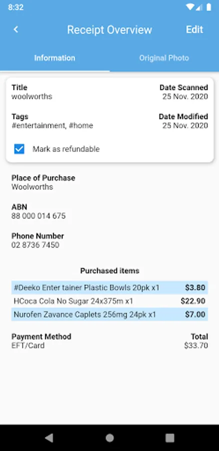 myreceipt captures information from your paper receipts and transforms them into useful digital receipts using OCR technology.