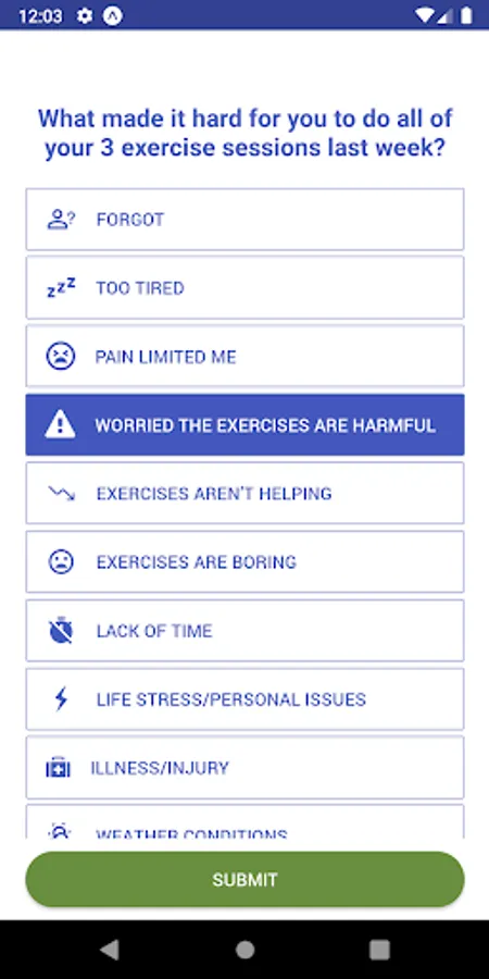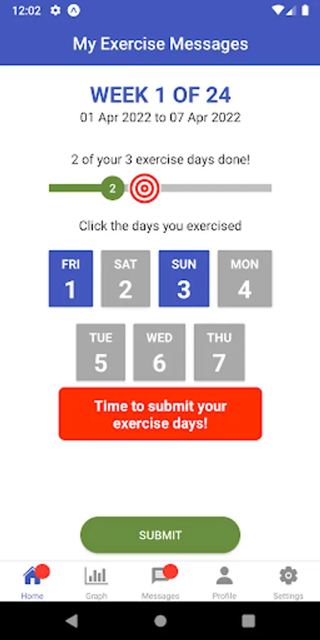 My Exercise Messages is a free and easy to use app designed to support people with osteoarthritis (chronic lower limb joint pain) stick to regular exercise. It can be used with any exercise program prescribed by a health professional. Simply download the app created by physiotherapists at The University of Melbourne, allow notifications, and input your weekly exercise goal. The app will prompt you to log your exercise sessions each week so you can monitor your progress against your goal, over-time. You’ll receive tailored messages based on behaviour change theory and university-led research. These messages will help motivate you and will support you if you encounter challenges getting your weekly exercises done.