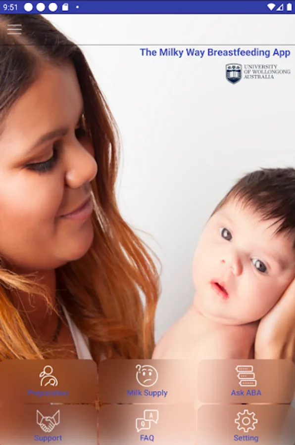 The information contained in this Milky Way application is presented by the University of Wollongong for the purpose of disseminating health information about breastfeeding benefits, challenges, and management strategies to the general community.