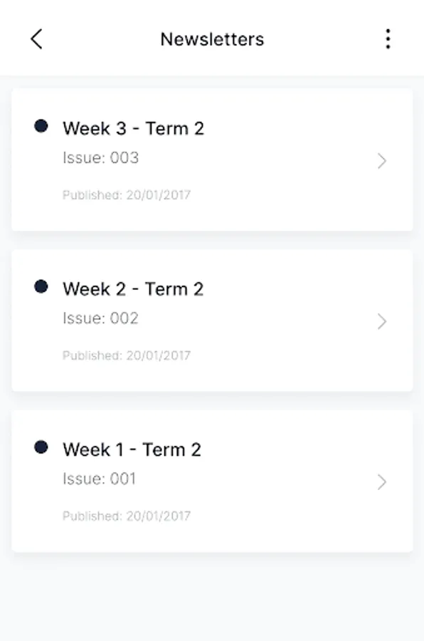 Newsletter: the Newsletter module allows Alamanda K-9 College to share electronic newsletters, directly to the app
