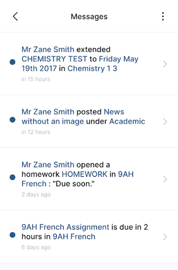 Messages: messages allow parents, teachers and students to communicate personally, in groups or to receive targeted communications from Donvale Christian College