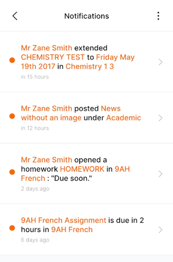 Calendar: the Calendar provides parents, teachers and students a personalised view of what's coming up for the day or in the future. Students can also receive reminders when the due date for their work is approaching
