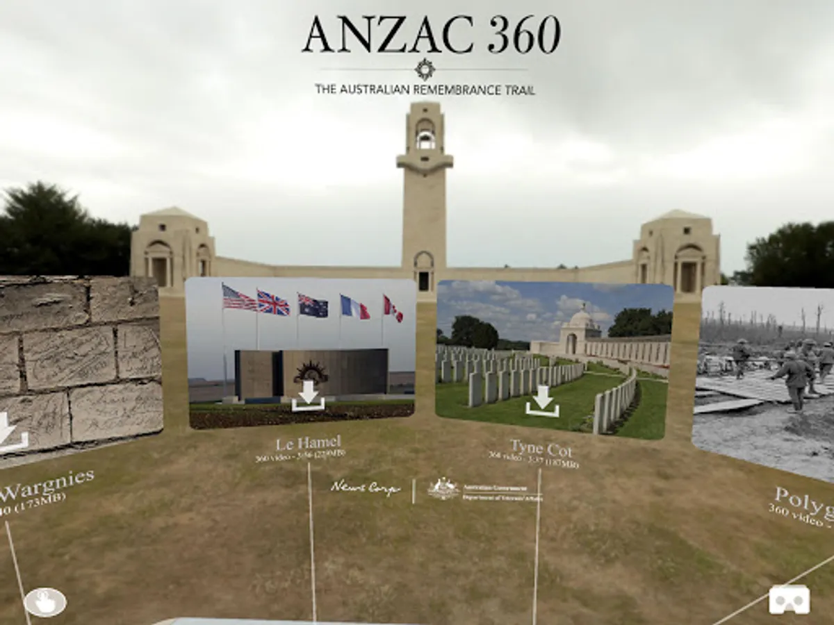 Soar over battlefields, explore stunning monuments, go inside ruined bunkers and restored trenches in 360 vision, using a headset or simply holding your phone or tablet.