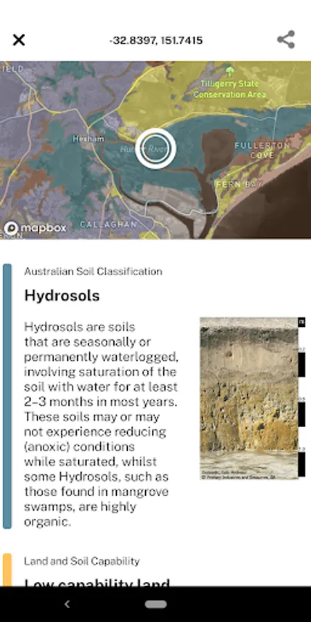 Soils Near Me offers a simple and intuitive way to access key soil information for NSW. It lets you explore data from across the state, and you can allow the app to access your location to show you data relevant to where you are.