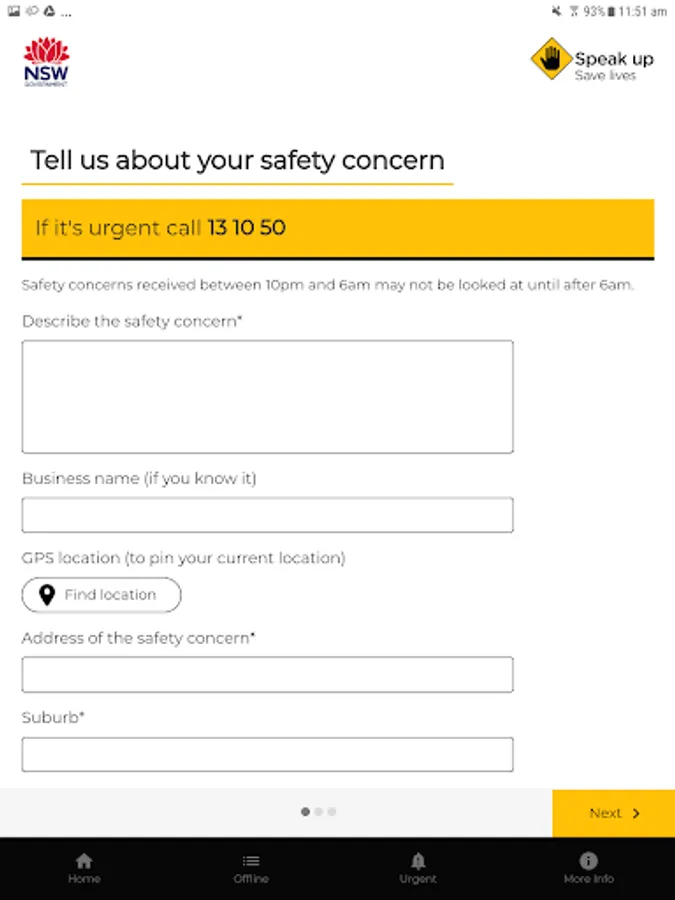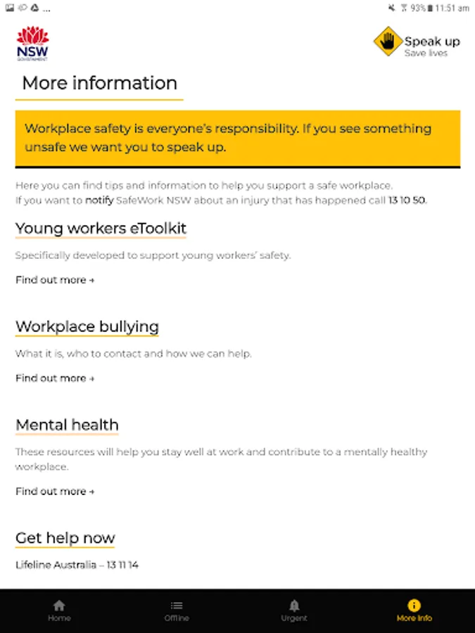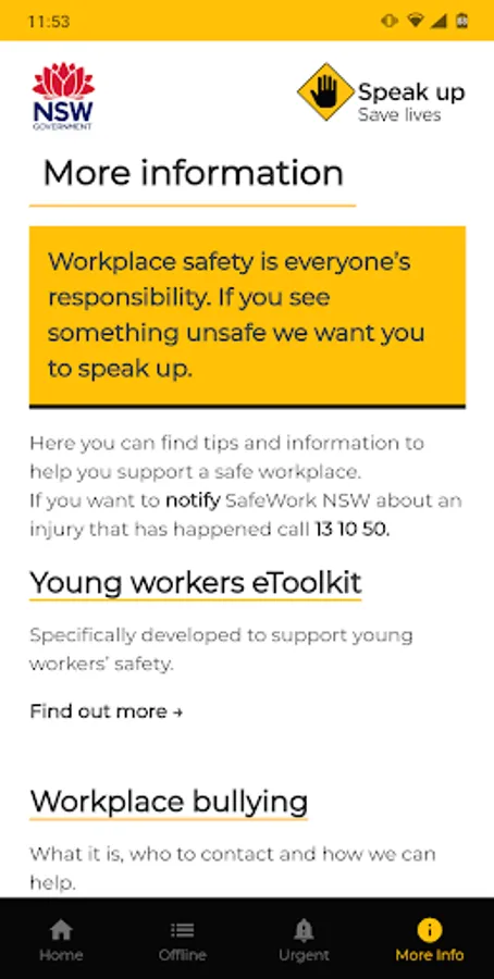 Workplace safety is everyone’s responsibility. If you see something unsafe, SafeWork NSW wants you to speak up and tell your boss. If you don’t feel you can, then our Speak Up Save Lives app lets you report an unsafe work situation and it gives you the choice to remain anonymous. You can tag your location, include photos, and choose to be kept updated on the issue you’ve reported.