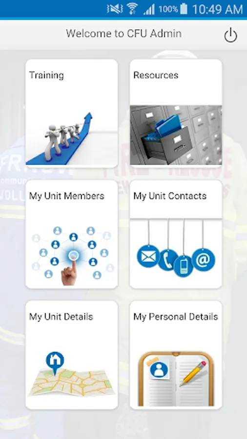 The CFU Admin App provides a CFU member with mobile access to update contact details, view unit information, training records, maps and pdf documents. CFU Team Coordinators have additional access to Update Drill details and contact details on behalf of other CFU Members.