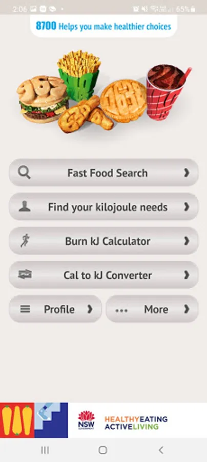 The free NSW Government app can help you choose healthier options by making it easier to understand how many kilojoules (calories) are in products from common fast food and snack chains.