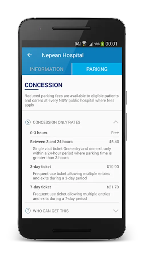 Helping you to find parking information and directions to public hospitals across NSW. Includes hospital contact and address details, public transport information, car park pricing and parking concession information if applicable.