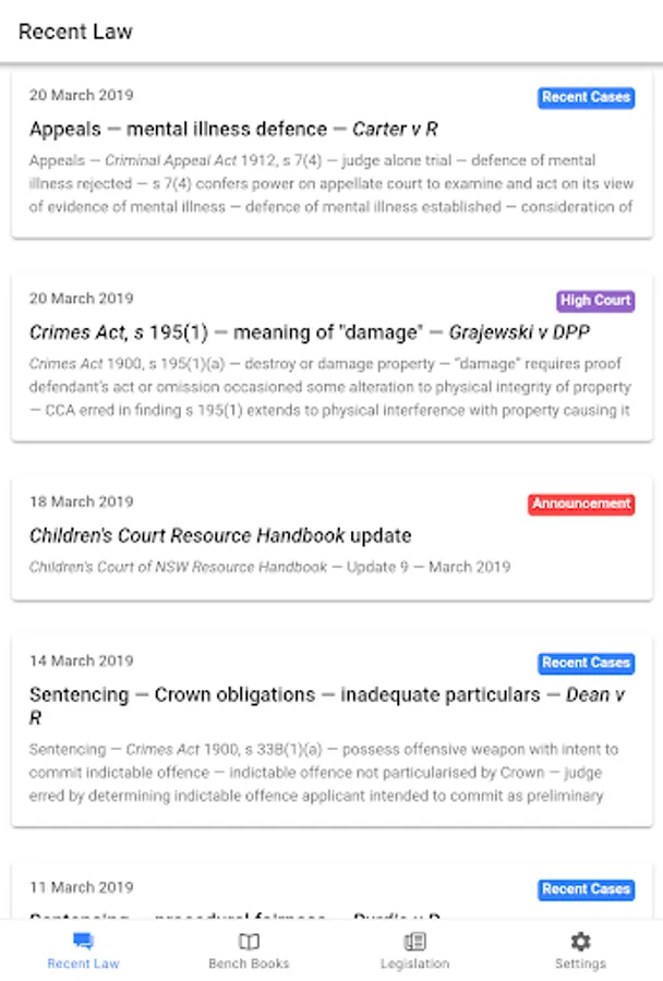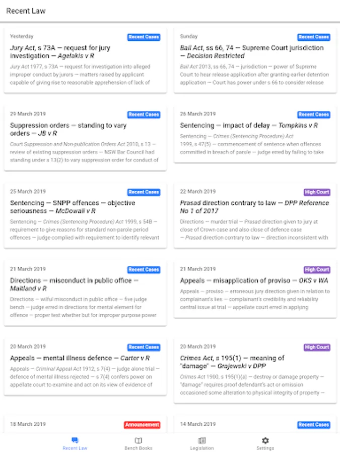 Download this app to keep on top of legal developments in New South Wales and manage personal copies of the bench books and selected pieces of legislation while out and about.