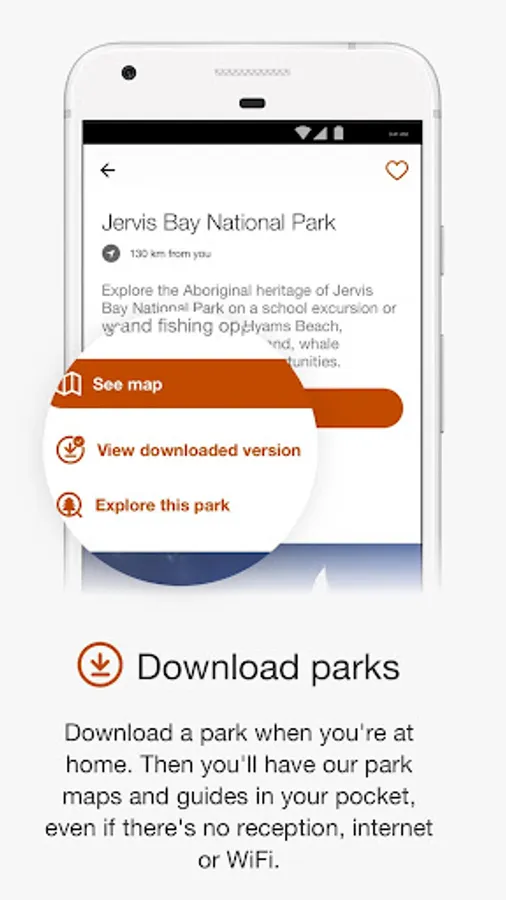 ● Download maps before you visit, then navigate safety when you’re in a park, even if there's no reception, internet or Wi-Fi.