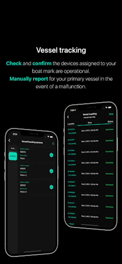 • check the status of vessel tracking devices and manually report (primary vessel only)