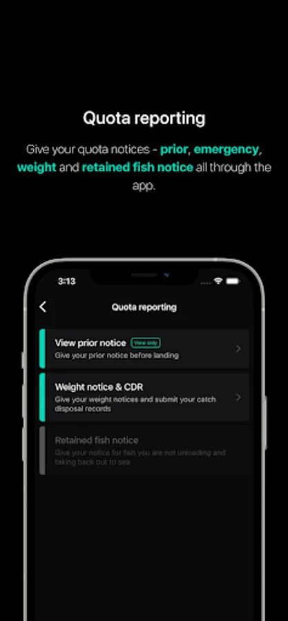 • submit quota notices (including prior notice, emergency notice, weight notice and retained fish notice)