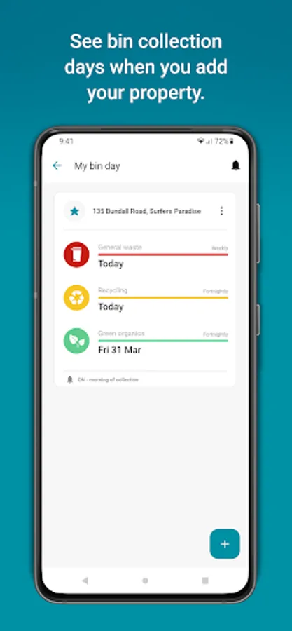 -Add your City of Gold Coast property address to see your bin collection schedule.