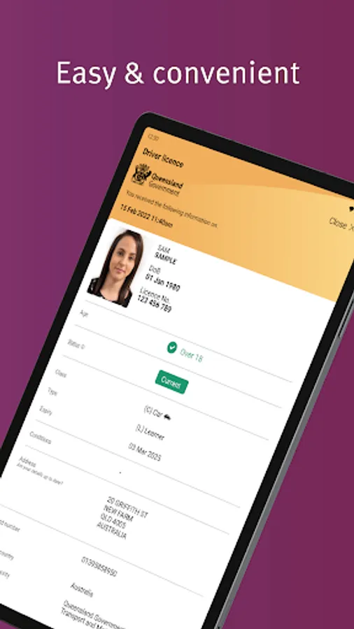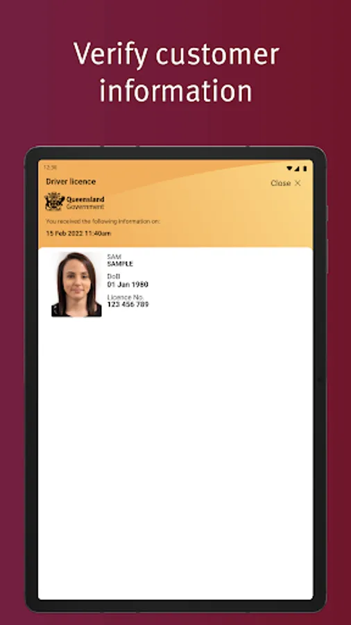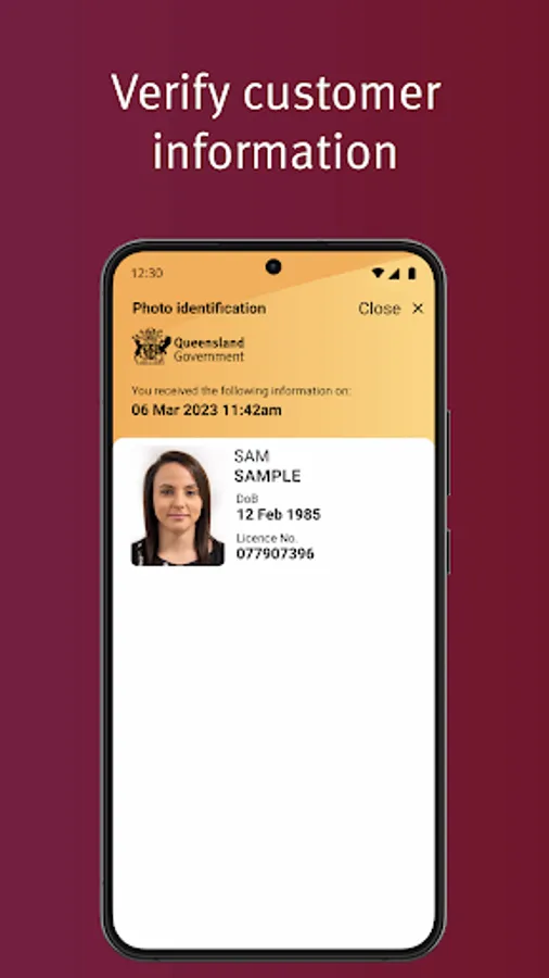 With the app, you can scan the QR codes presented by the Queensland Digital Licence app. The information which the customer has chosen to share with you will then appear in the Verifier app.