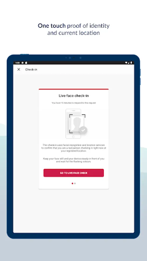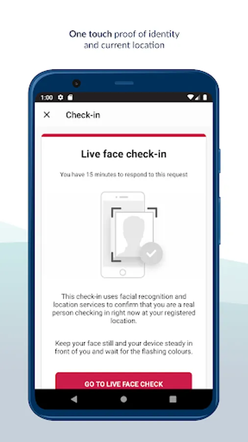- Random live face check-in requests to show a real person checking in at their registered location in real time.