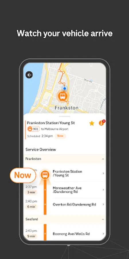 - Live tracking: Watch your service arrive at any stop (available for bus and train only)