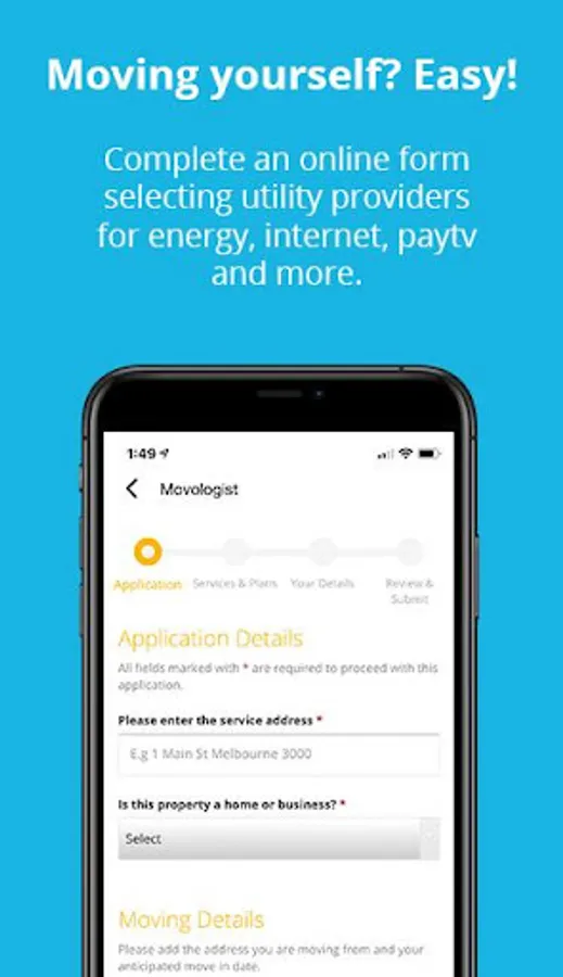 Connect your utilities and other essential moving services using the Move Yourself feature. Enter your contact details, choose your required services, view plans and select providers all in the palm of your hands within a few minutes.