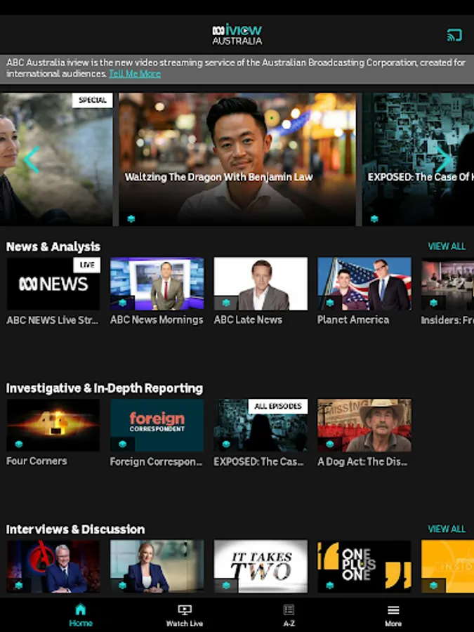 Play ABC Australia iview on the go or lean back on your sofa to watch ABC video on the big screen using Chromecast.