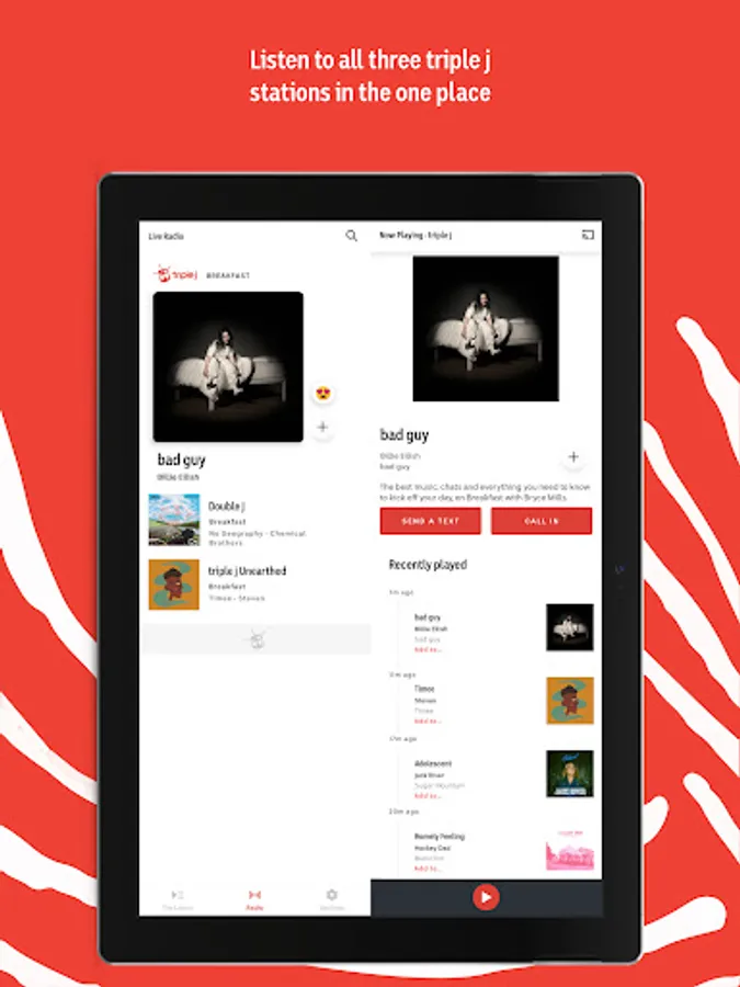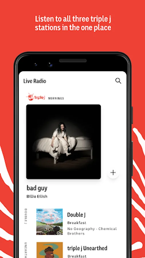 Flick between triple j, Double J and triple j Unearthed live radio, or catch up on all your favourite episodes, podcasts or Like A Version videos anytime with the addition of our new On Demand section.