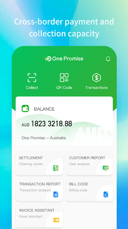 OnePromise is a cross-border payment collection app that supports WeChat, Alipay, UnionPay, and other channels, helping Australian merchants to complete payments conveniently and quickly. The app provides real-time payment reminders, account balance inquiries, and all transaction flow management functions. If you are an Australian merchant and need a powerful and easy-to-use cross-border payment collection app, One Promise is your best choice.