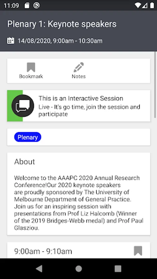 * Program Agenda - view the full agenda and related information (session times, room names, speaker info, and more).