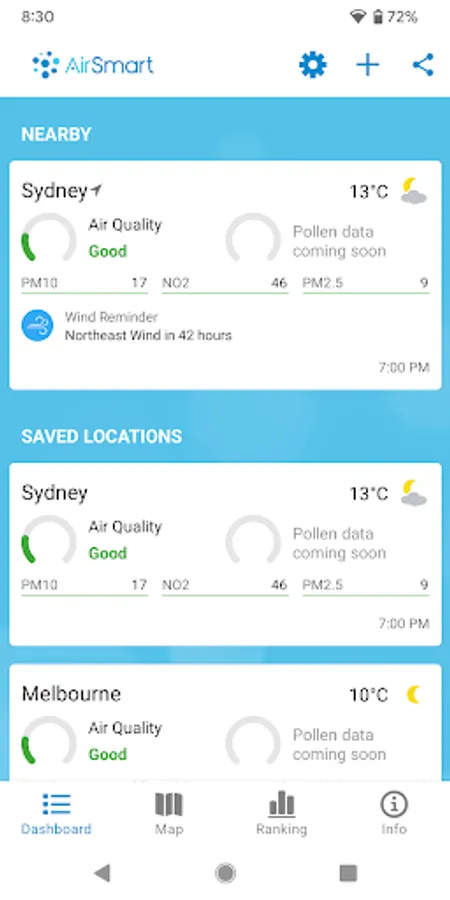 Asthma Australia’s AirSmart app gives you the information you need to plan your day and reduce exposure to air pollution.
