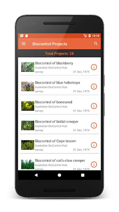 The Biocontrol Hub app supports discovery of Citizen Science projects for weed biocontrol in Australia. The Biocontrol Hub app provides form-based structured field data collection for biocontrol agents and target weeds.
