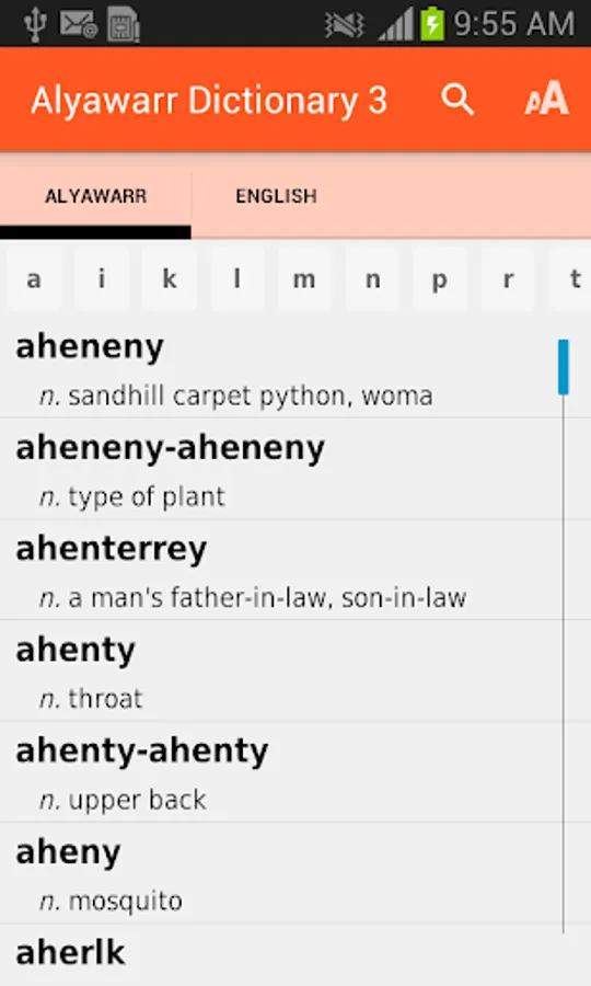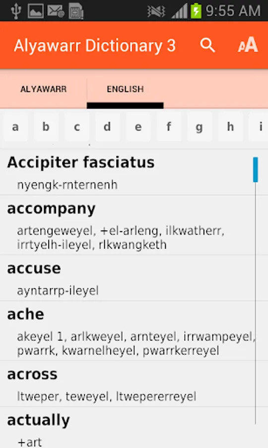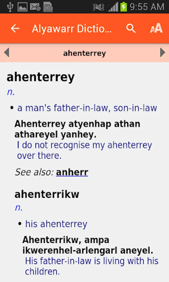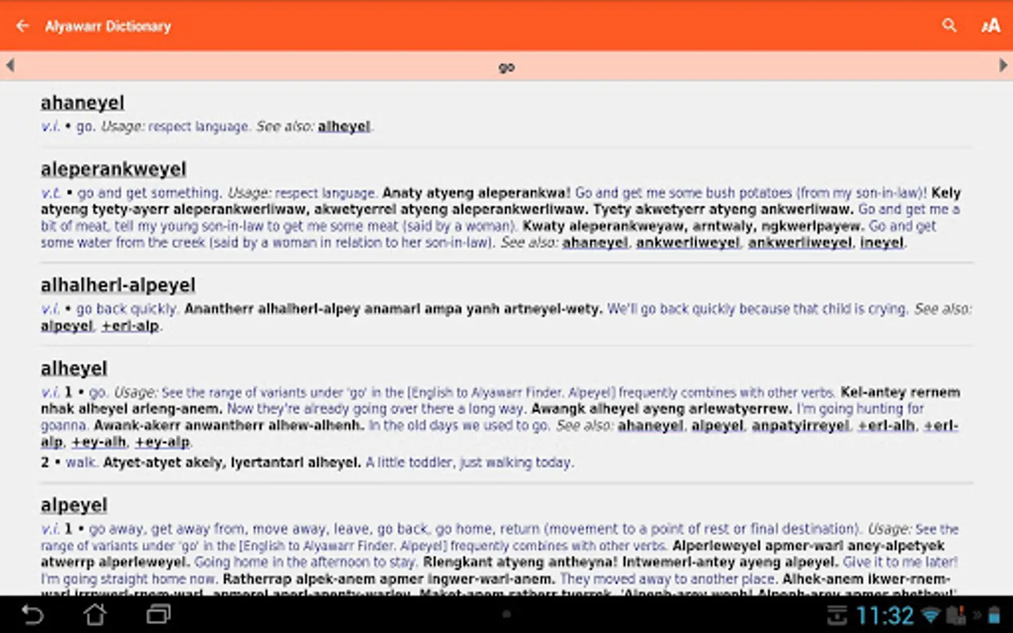 There is a comprehensive print version of this dictionary, published by IAD Press (https://iadpress.com/). It complements this app, and we recommend students of Alyawarr use both formats together.
