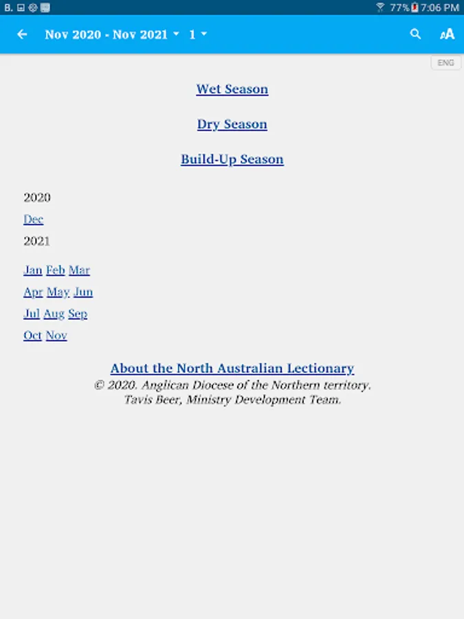 The North Australian Lectionary app is a reference tool for churches in the Anglican Diocese of the Northern Territory.