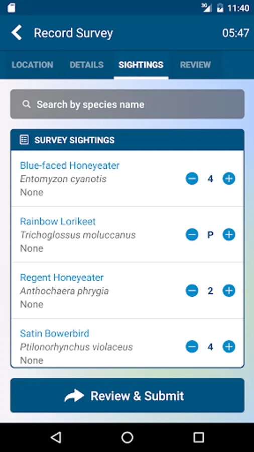 The Birdata mobile app is intended to facilitate simple data entry in the field on