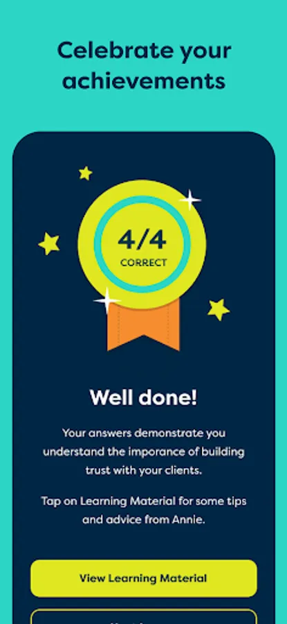 Learners are given the flexibility to decide what and when to learn based on their time and needs, as well as the knowledge gaps identified through interactive quizzes. The search function helps to navigate through the application and find topics that learners want to explore. Ask Annie has been designed with the user in mind making learning a very engaging and intuitive experience.