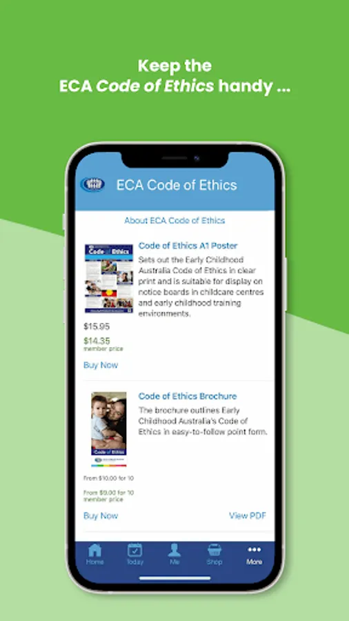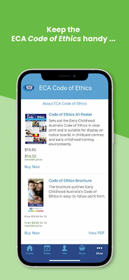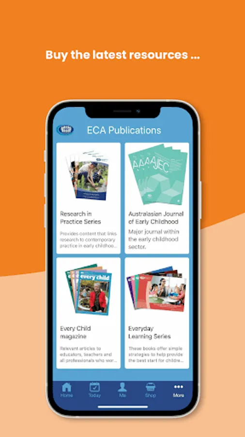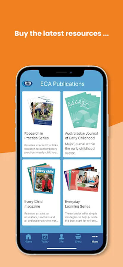 The ECA app includes a Today section that shares the most up-to-date news, resources and upcoming events. You can also find the ECA Code of Ethics and latest policy and advocacy documents, listen to podcasts and shop our bestselling quality-assured resources.