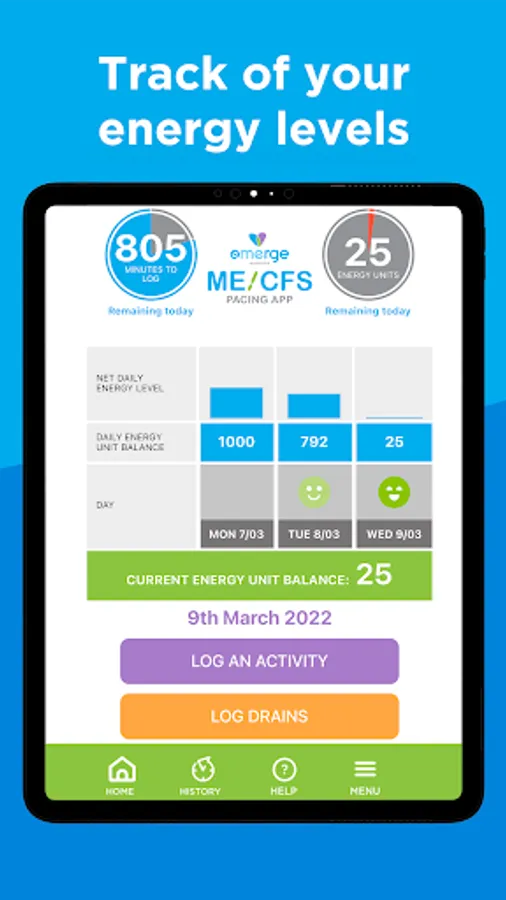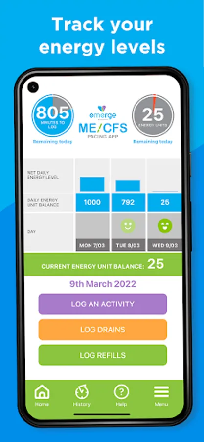 This app is designed to help people with mild to moderate ME/CFS better manage their daily energy use to improve the quality of their lives.