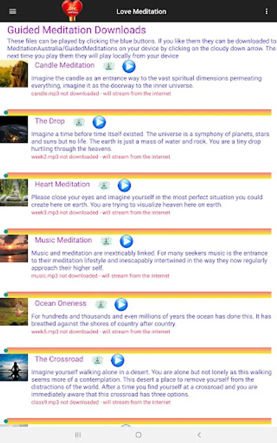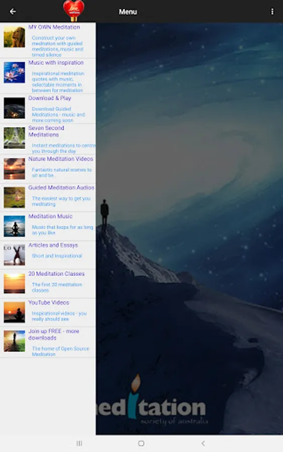 Free learning to meditate resources including guided meditations, meditation classes, essays, meditation music and much more for the beginner or experienced meditator.. From the Meditation Society of Australia all resources are free.