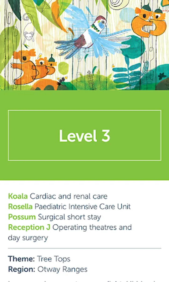 My RCH is an interactive guide designed for patients and families of The Royal Children’s Hospital (RCH) to help you know what to expect during your stay and navigate around the RCH world. This app takes you through each ward by showing specific room and ward features and descriptive information including the various healthcare professionals you may meet.
