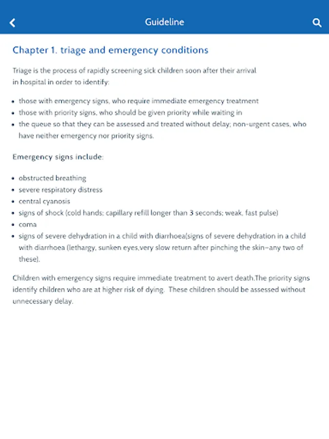 With this WHO e-Pocketbook of Hospital Care for Children app, all guidelines can be viewed offline and will be updated regularly.