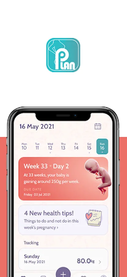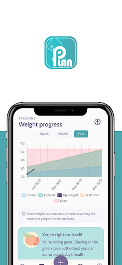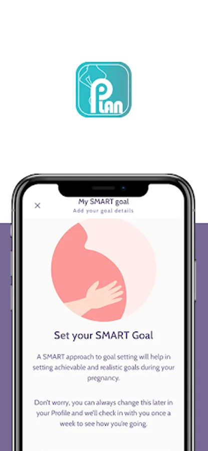 PLAN - Pregnancy Lifestyle Activity and Nutrition. Provides personalised weight tracking for optimal weight gain and lifestyle during pregnancy. Also provides education on nutrition, activity and goal setting suitable for pregnant women.