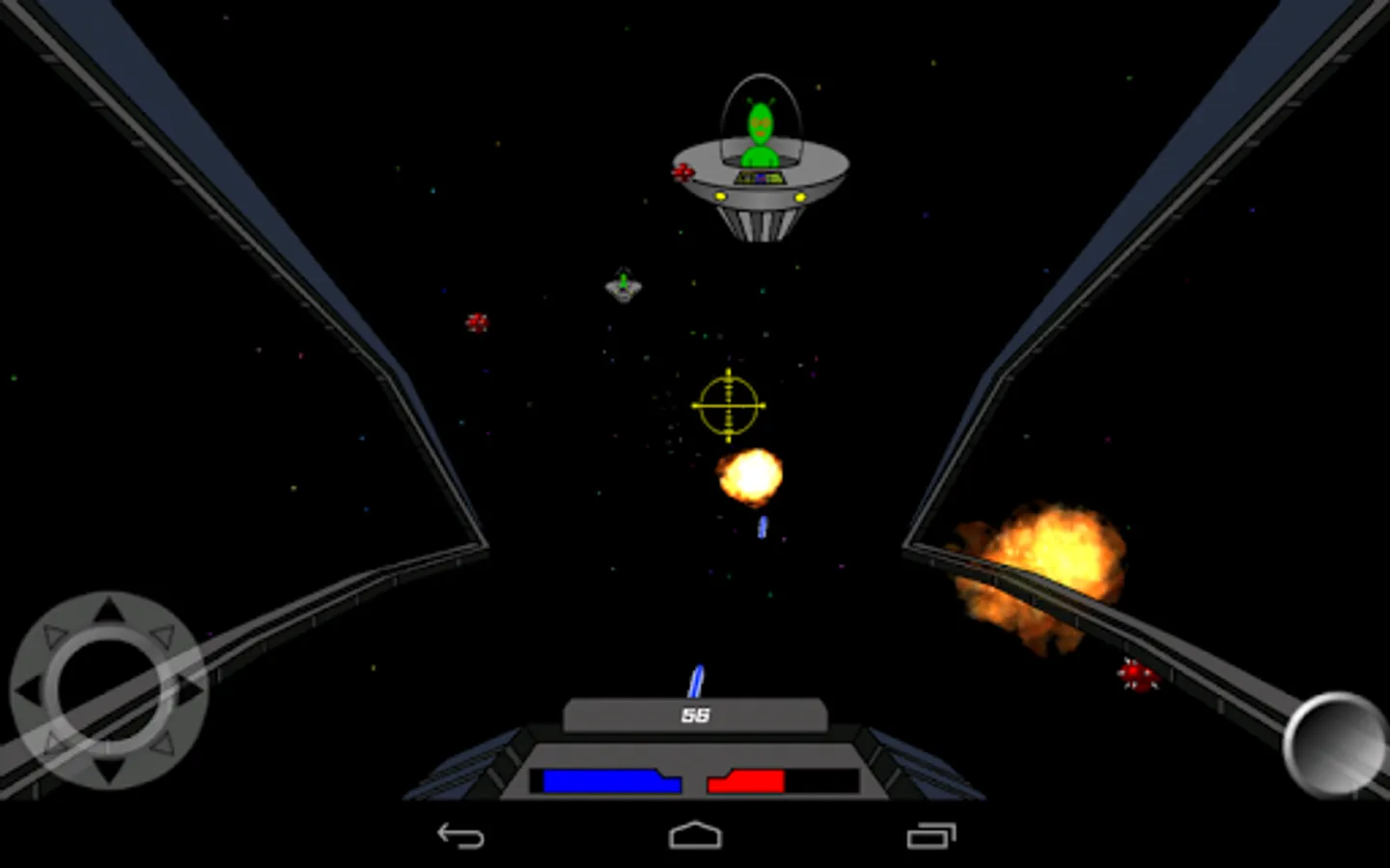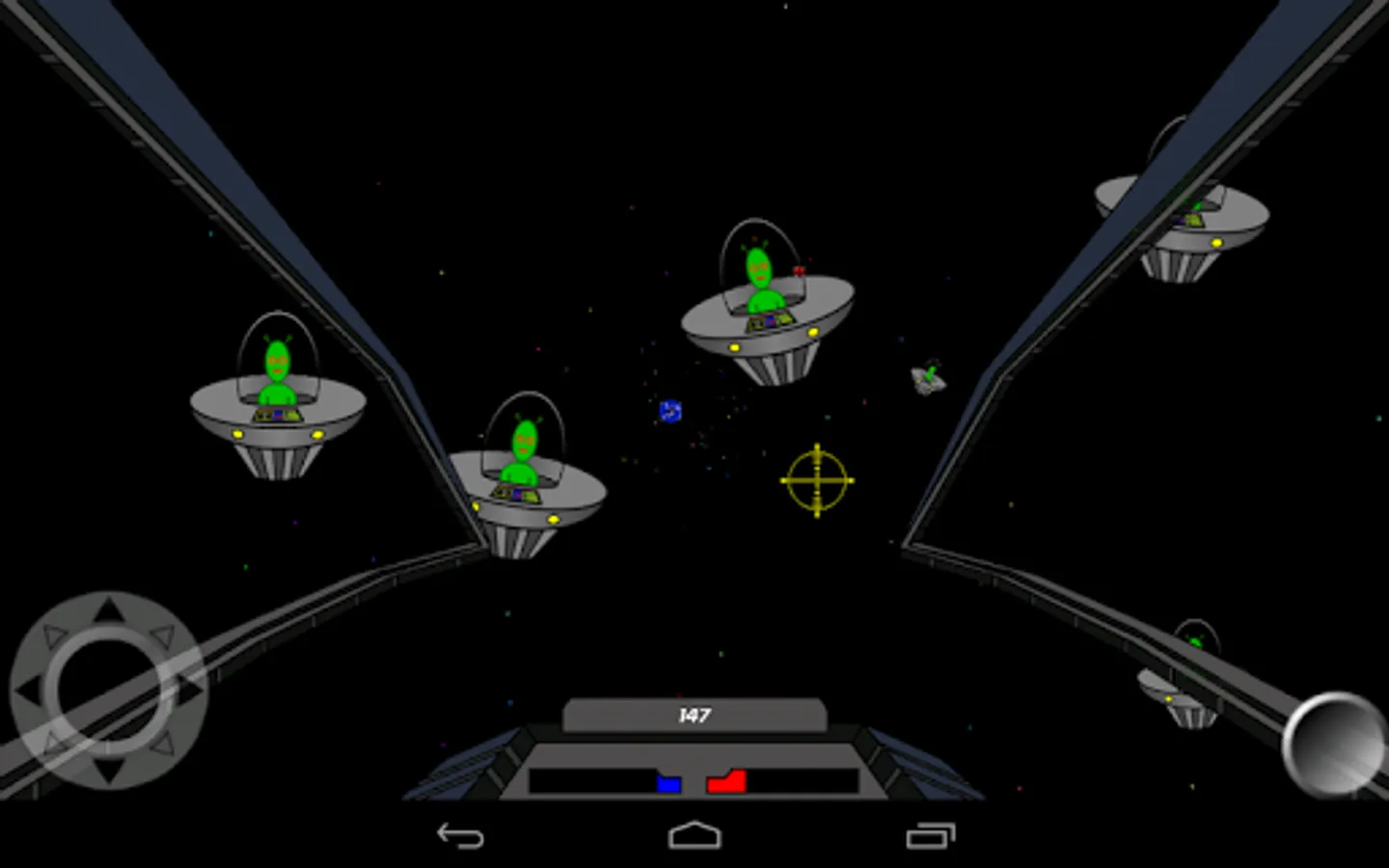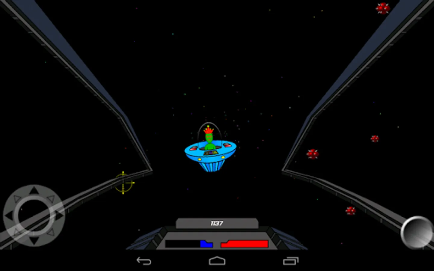 Your Captain has upset the Martian Emperor and now you are fleeing Mars with some very Mad Martians closing in. You need to defend your ship long enough to get to safety. Use the joystick to aim your cross-hairs on the target and the right button to fire your weapon. Look out for Martian mines, keep a close eye on your shields, and try not to overheat your weapon.